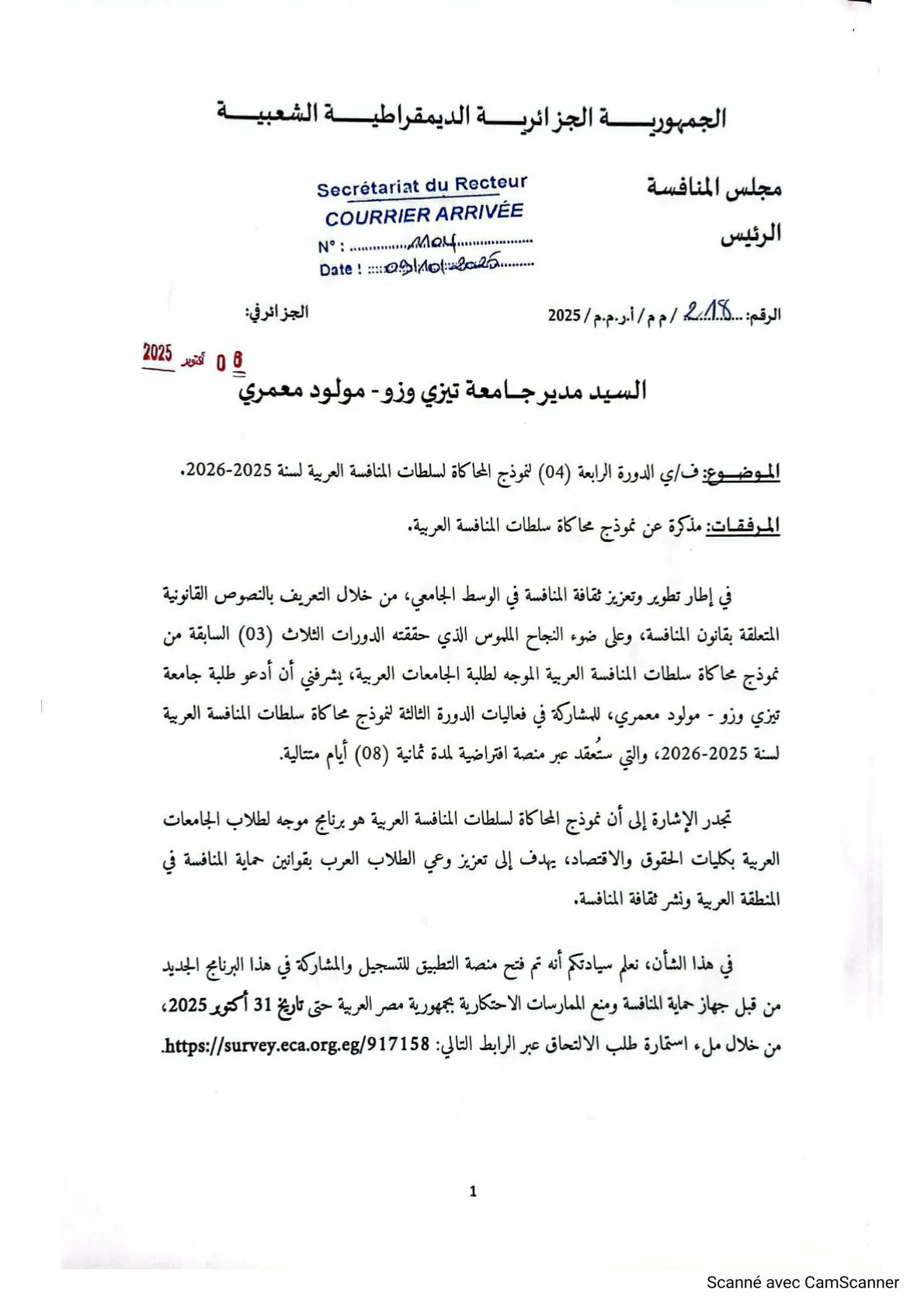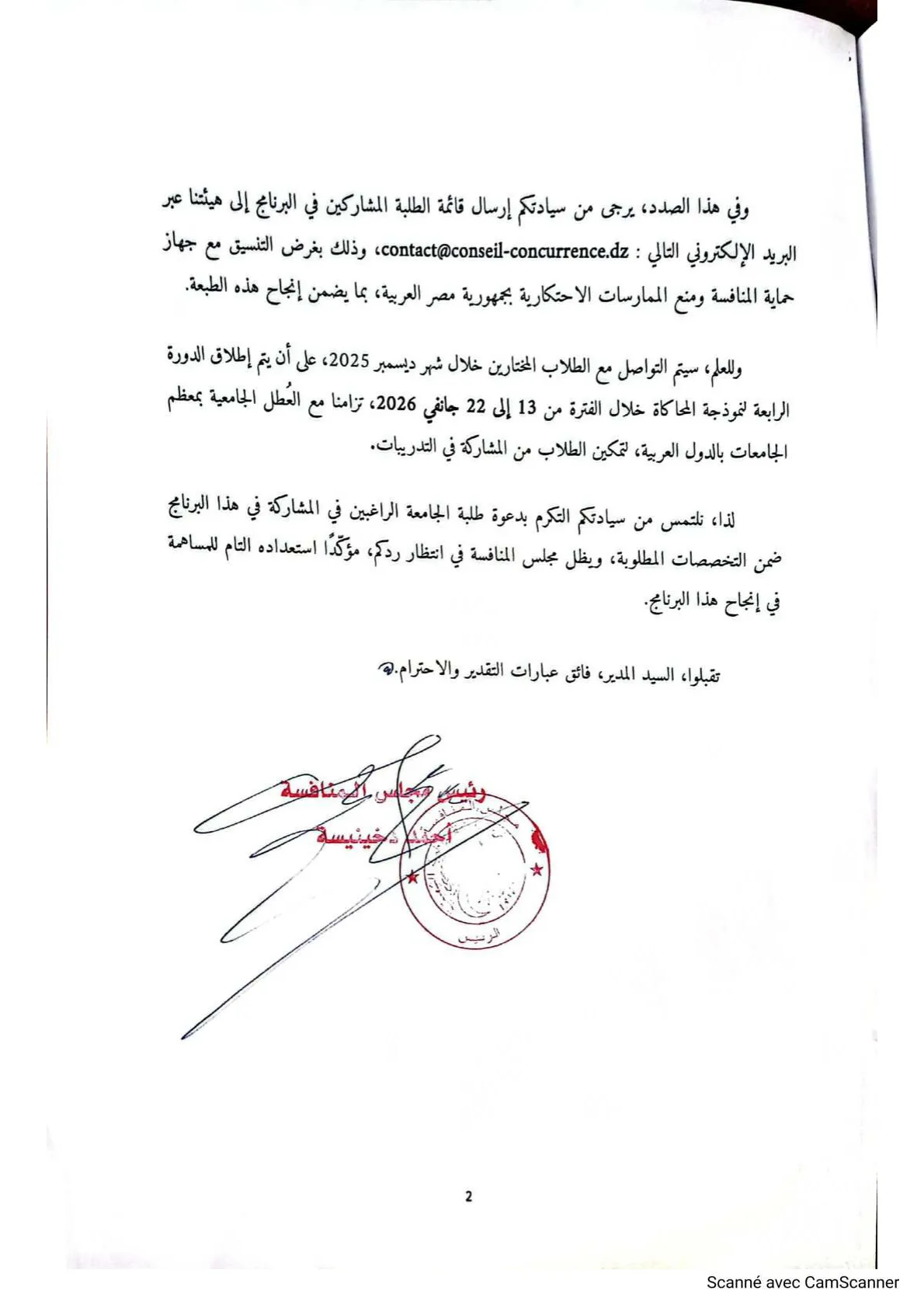 الدورة الرابعة لنموذج المحاكات لسلطات المنافسة العربية لسنة 2026/2025
