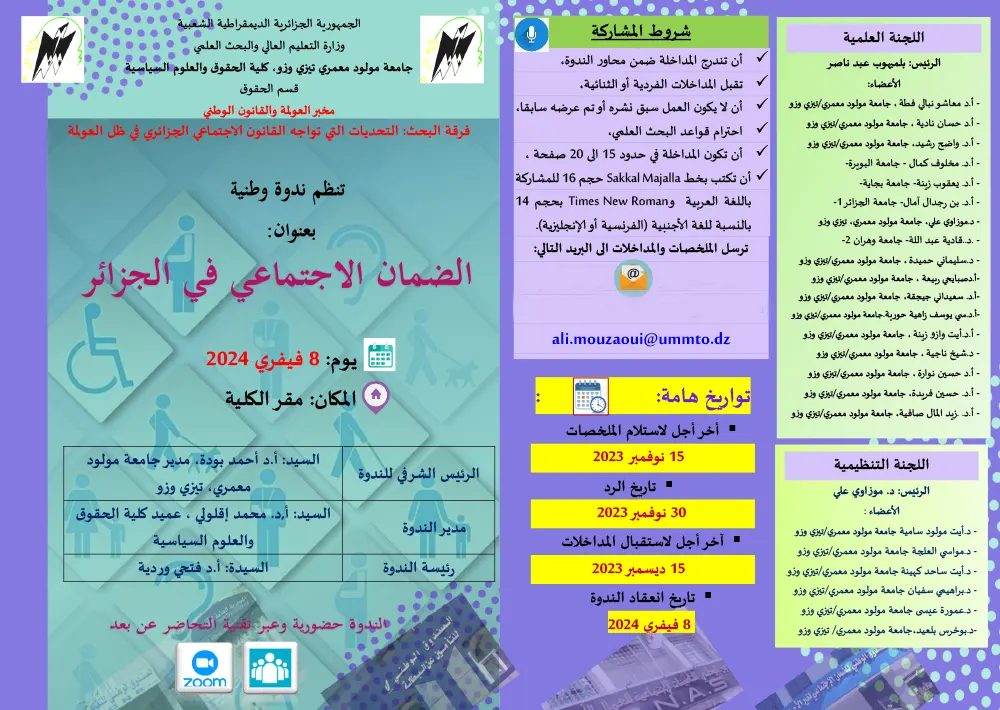 تجسيدًا للبرنامج السنوي (2025-2026)، المتعلق بالأنشطة العلمية والثقافية والرياضية، الذي سطرته مديرة الحياة الطلابية بالتنسيق مع الديوان الوطني للخدمات الجامعية، يشرفنا إعلامكم...