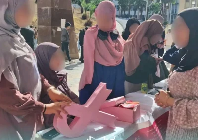 تميّز النشاط بأجواء يسودها الأمل والطاقة الإيجابية، حيث شارك الطلبة في ورشات للعناية الذاتية، الدعم النفسي، التغذية الصحية، والتصميم الإبداعي باللون الوردي.