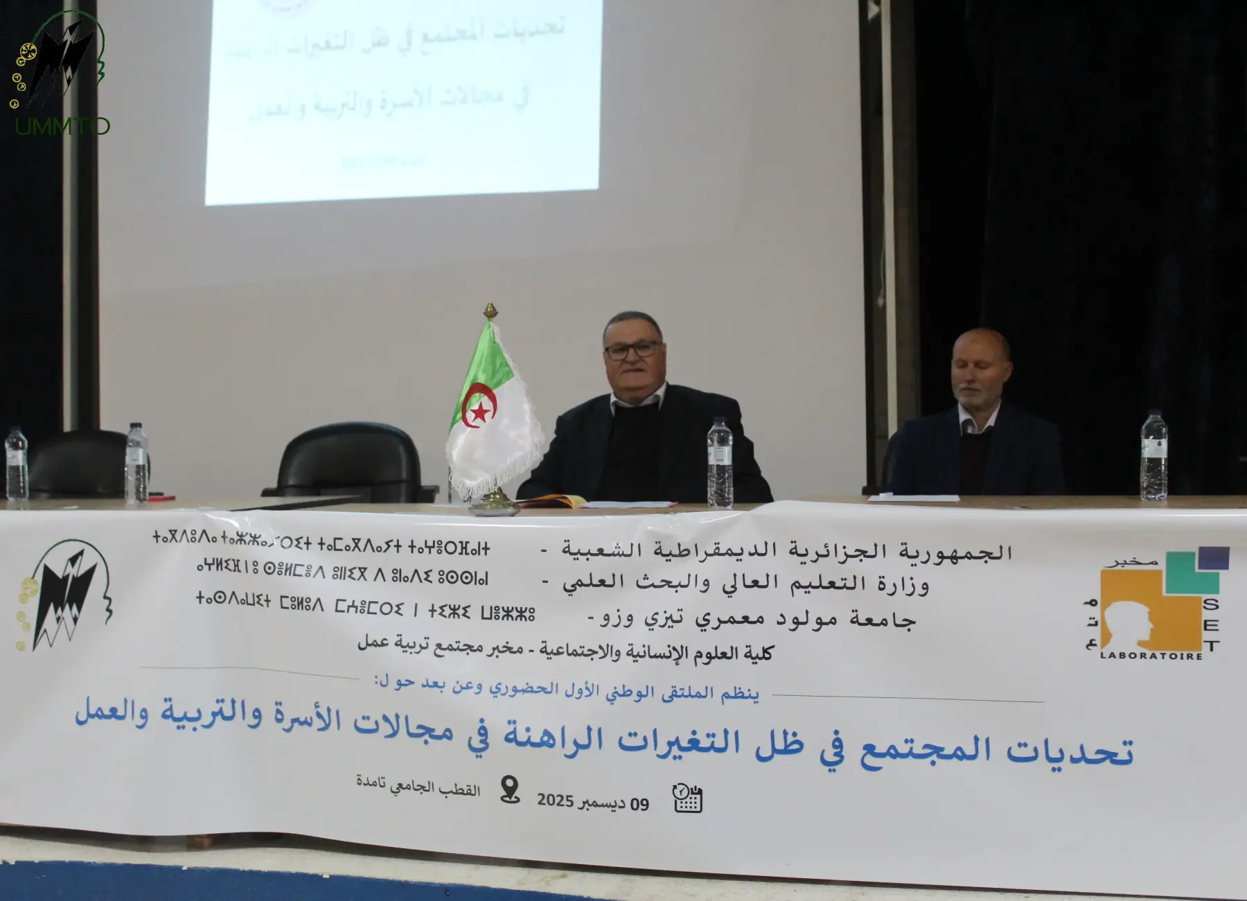 العودة بالصور من الملتقى الوطني بعنوان: تحديات المجتمع في ظل التغيرات الراهنة في مجالات الاسرة و التربية و العمل