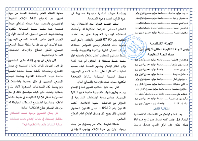 بمناسبة اليوم الوطني للشهيد، ينظم قسم العلوم الانسانية بالتنسيق مع المتحف الجهوي للمجاهد بتيزي وزو ملتقى وطني حول : « علي بن نور : تجسيد الثنائية بين العمل السياسي و الكفاح...