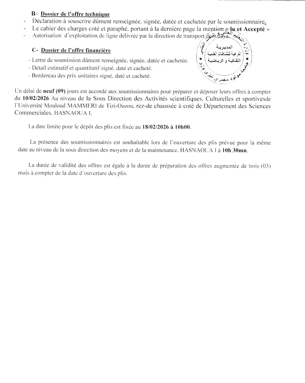AVIS DE CONSULTATION  N°01/SDMM/RECTORAT/UMMTO/2026Pour mieux visualiser, imprimer ou télécharger l'Avis, cliquez sur "View Fullscreen"[pdfjs-viewer...