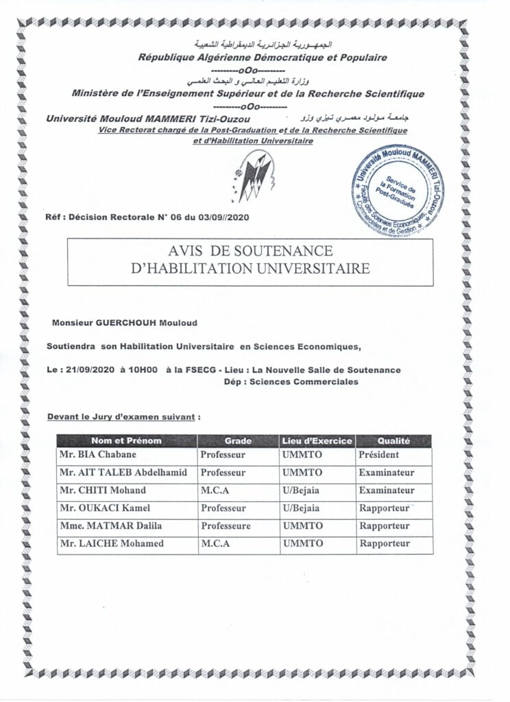 6 Sep 2020 | Avis de soutenance, Habilitation universitaire