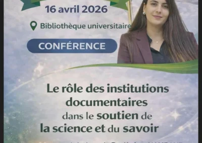 À l’occasion de la Journée du Savoir, la Bibliothèque universitaire a organisé une journée d’activités dédiée à la promotion du savoir et à la valorisation de ses ressources documentaires et numériques. Cette rencontre a proposé une exposition d’ouvrages consacrés à l’histoire de l’Algérie, des ateliers de présentation des ressources numériques de la bibliothèque, ainsi qu’une communication scientifique animée par Mme Karima HAMDANE (FSHS), portant sur le rôle des institutions documentaires dans la diffusion du savoir.