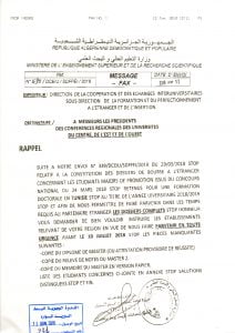 Je vous prie de trouver, en attaché, courrier de la Sous-direction de la Formation et du Perfectionnement à l’étranger et de l’Insertion /MESRS, relatif aux compléments des dossiers des étudiants retenus pour une formation Doctorale en Tunisie, au titre de l’année universitaire 2018/2019, et ce avant le 10 juillet 2018.