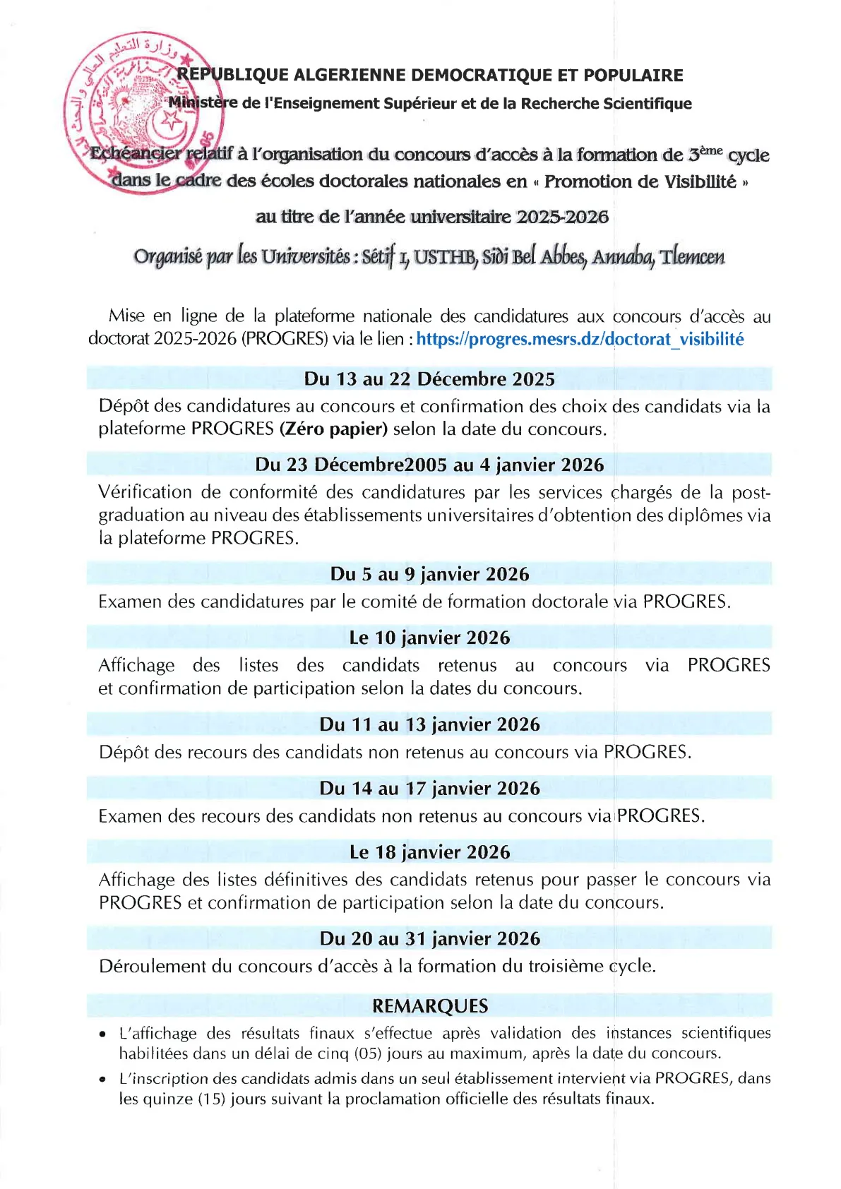 Concours de doctorat sur la thématique : Promotion de la visibilité