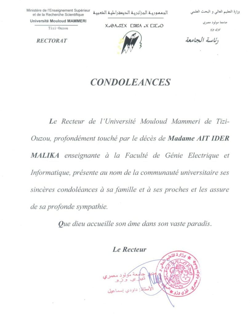 Condoléances: décès de l’enseignante AIT AIDER Malika