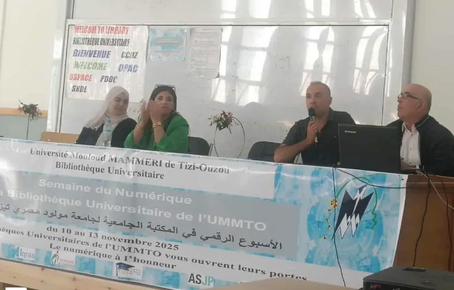 A l’ENS Tamda, la dernière journée de la Semaine du Numérique a offert aux étudiants et enseignants l’opportunité de découvrir les bibliothèques de l’UMMTO et leurs services, d’explorer les catalogues et ressources numériques, et de participer à des ateliers pratiques sur la recherche bibliographique et les bases de données.