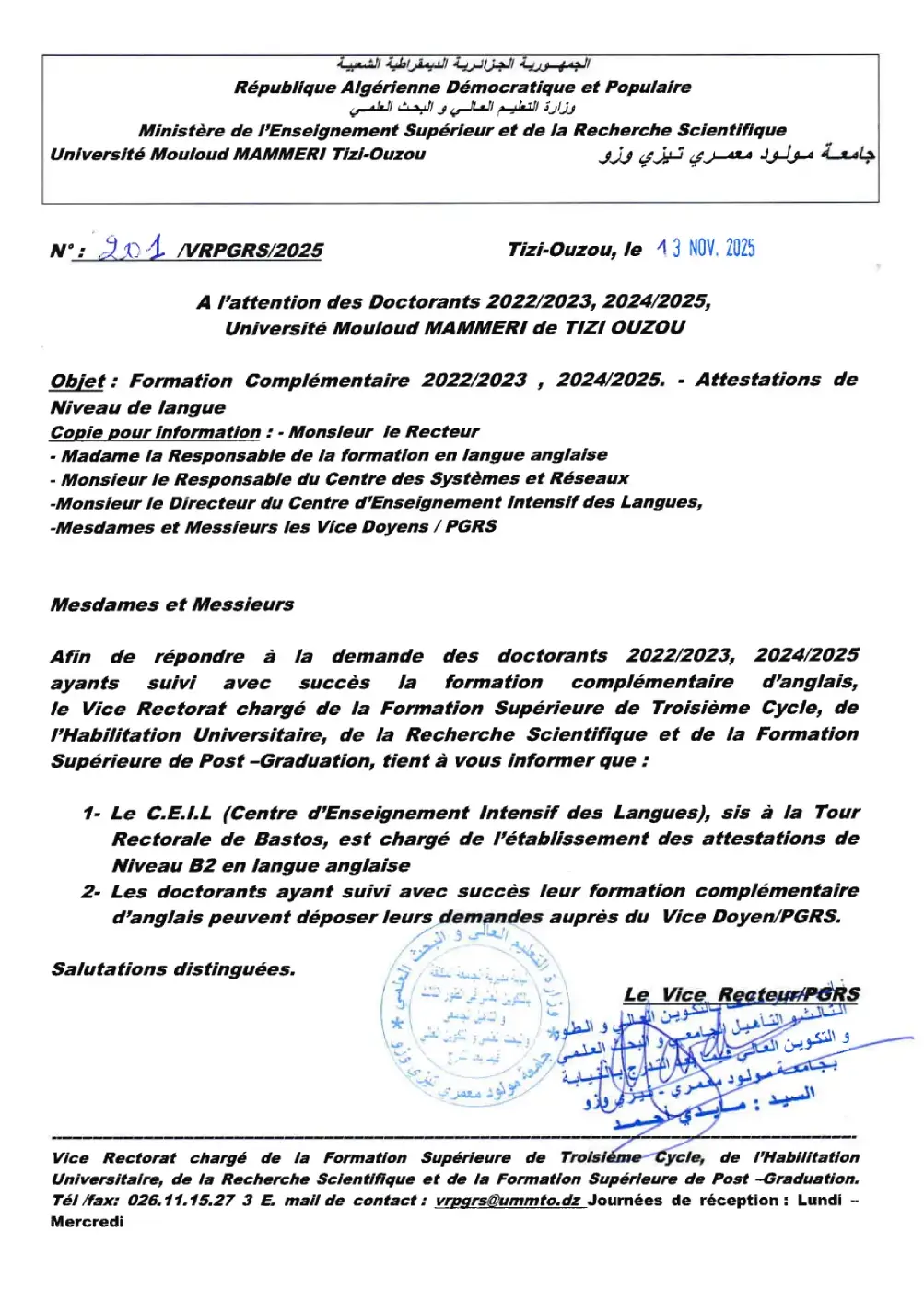 Doctorants 2022/2023 et 2024/2025 : Attestation de niveau de langue
