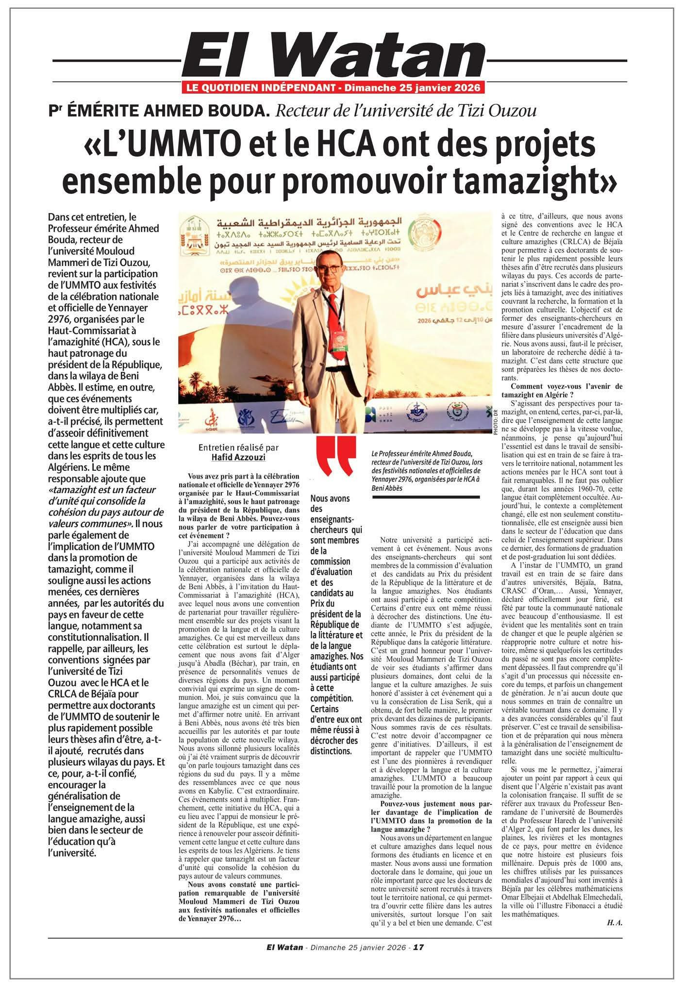 El Watan : L’UMMTO et le HCA ont des projets ensemble pour promouvoir tamazight