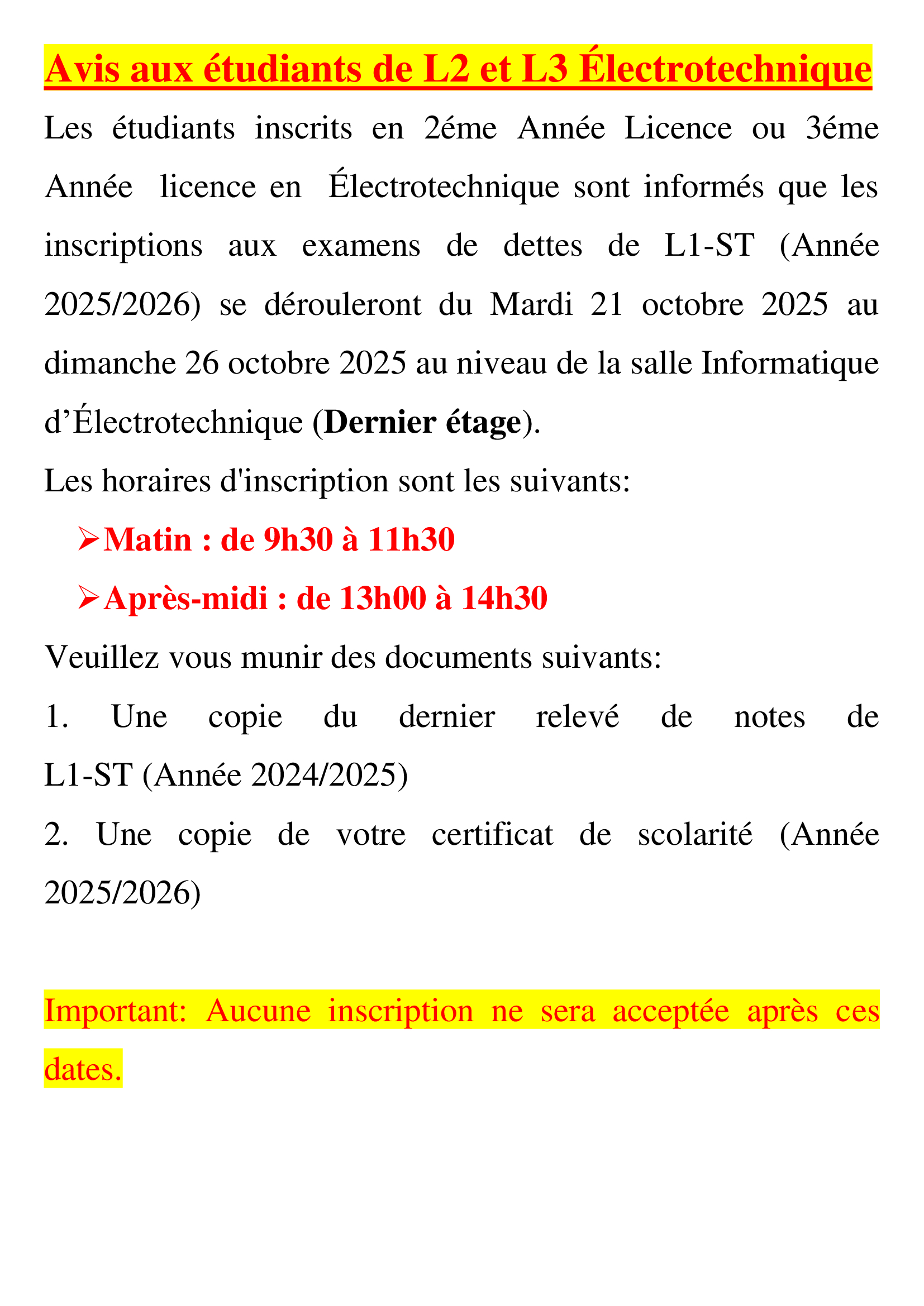 - Avis aux étudiants de L2 et L3 électrotechnique