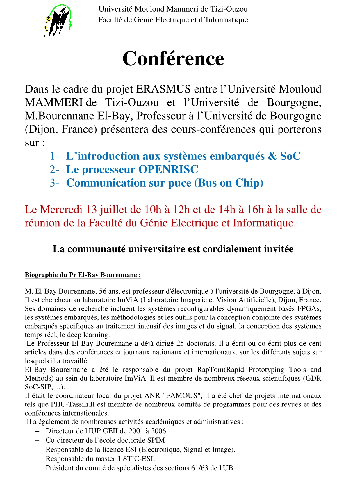 Conférence de M. Bourennane El-Bay, Professeur à l’Université de Bourgogne (Dijon, France)