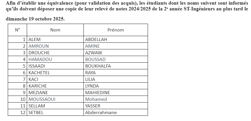 Affectation des Étudiants répétitifs de 2ᵉ Année ST Ingénieurs à la 2ᵉ Année Ingénieurs – Groupe A (Génie Électrique)