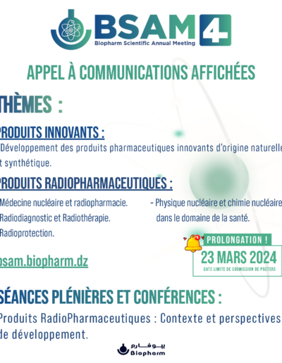 Prolongation de l’ 𝐀𝐩𝐩𝐞𝐥 𝐚̀ 𝐂𝐨𝐦𝐦𝐮𝐧𝐢𝐜𝐚𝐭𝐢𝐨𝐧𝐬 𝐚𝐟𝐟𝐢𝐜𝐡𝐞́𝐞𝐬 𝐁𝐒𝐀𝐌𝟒 – 𝐓𝐡𝐞 𝟒 ͭ ͪ 𝐁𝐢𝐨𝐩𝐡𝐚𝐫𝐦 𝐒𝐜𝐢𝐞𝐧𝐭𝐢𝐟𝐢𝐜 𝐀𝐧𝐧𝐮𝐚𝐥 𝐌𝐞𝐞𝐭𝐢𝐧𝐠 !