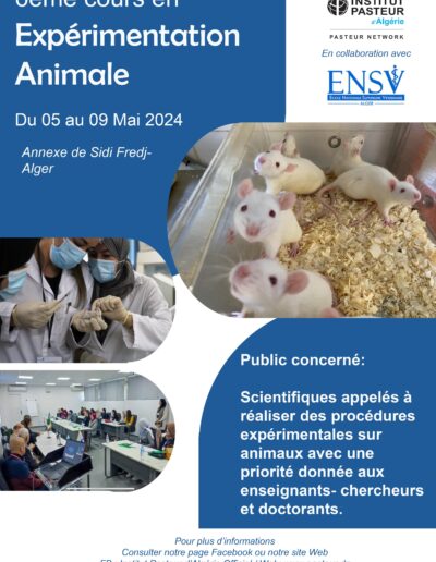 L’Institut Pasteur d’Algérie organise une offre de formation du 05 au 09 Mai 2024 en expérimentation animale au niveau de son Annexe de Sidi Fredj (avec possibilité d’hébergement sur place).