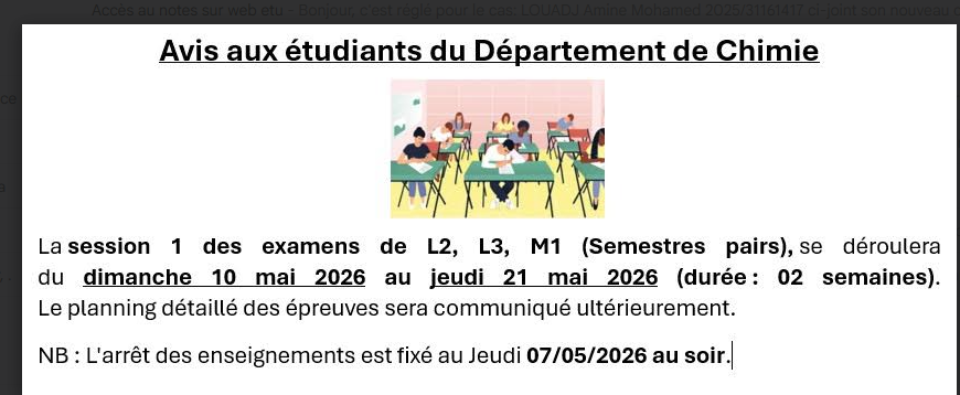Avis aux étudiants 2ème année chimie