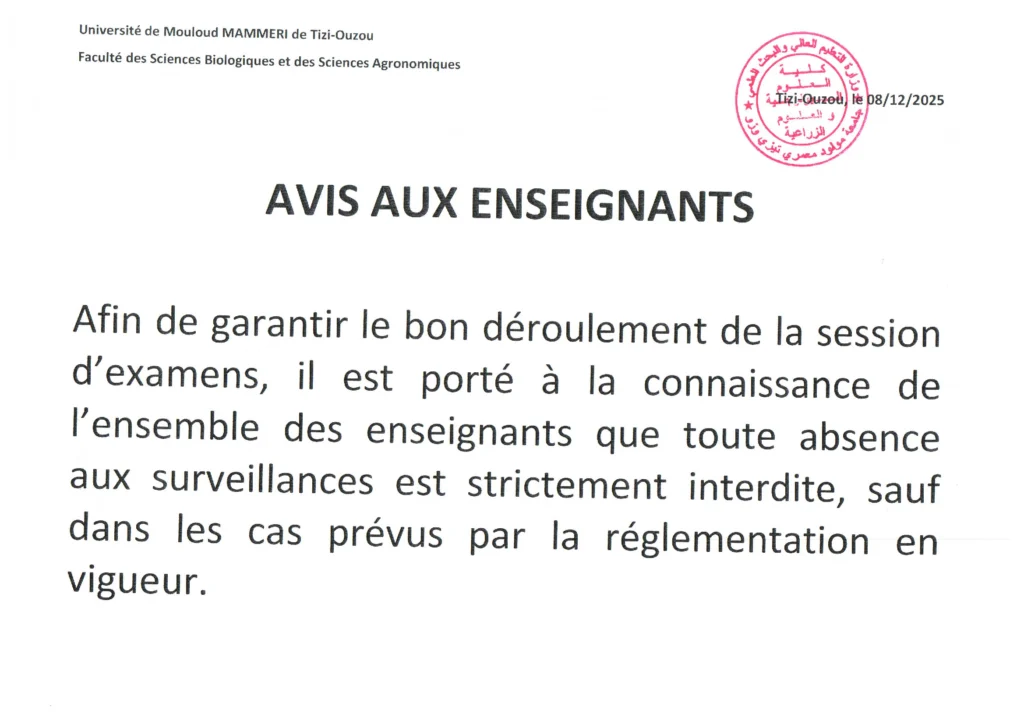- Avis aux étudiants de la faculté des sciences biologiques et des sciences agronomiques