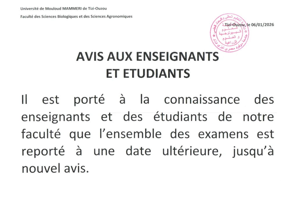 Avis Aux Etudiants et Aux Enseignants