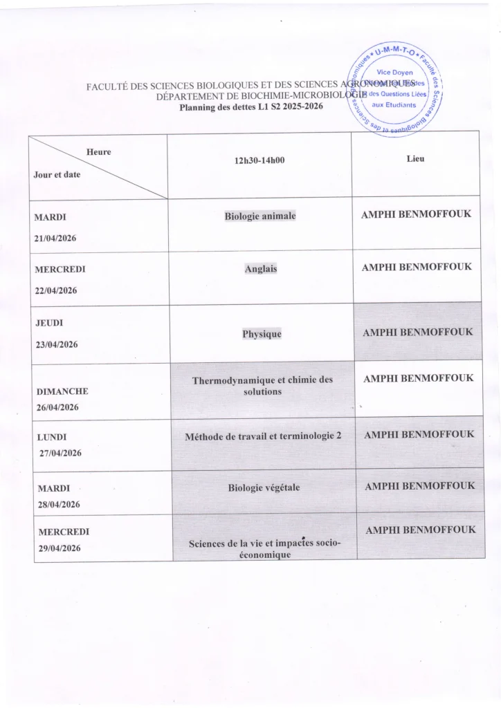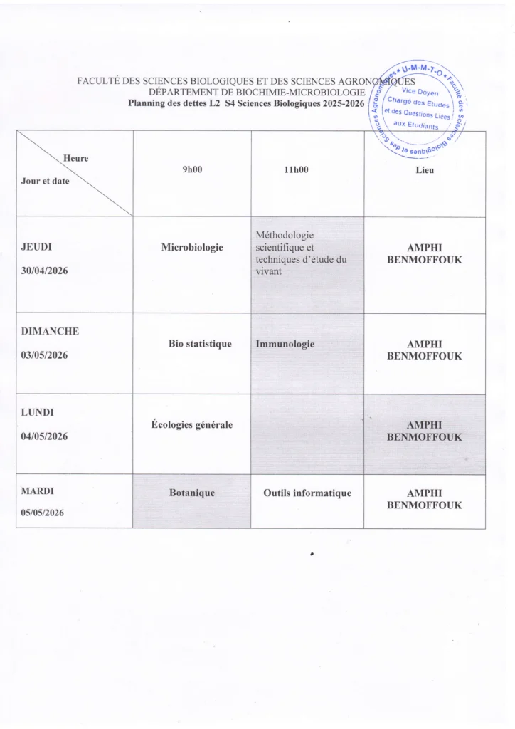 Planning des examens de dettes L1 et L3 pour les étudiants en L3 2025/2026