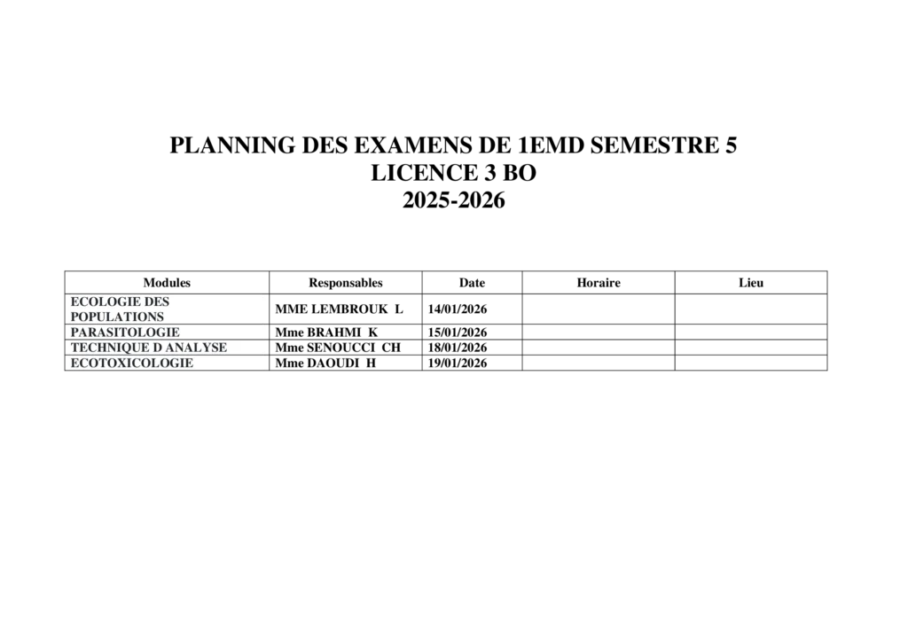 Planning des examens L3 BO 2025/2026