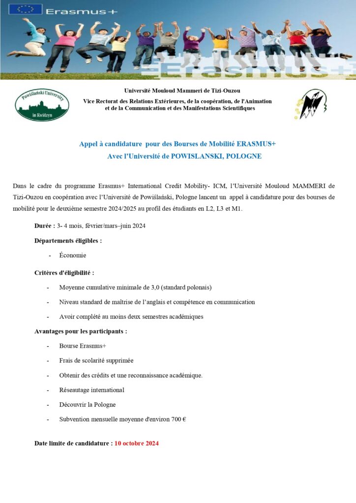 transmise à l’adresse suivante : mobilité.univ@ummto.dz avant le 10 octobre 2024.