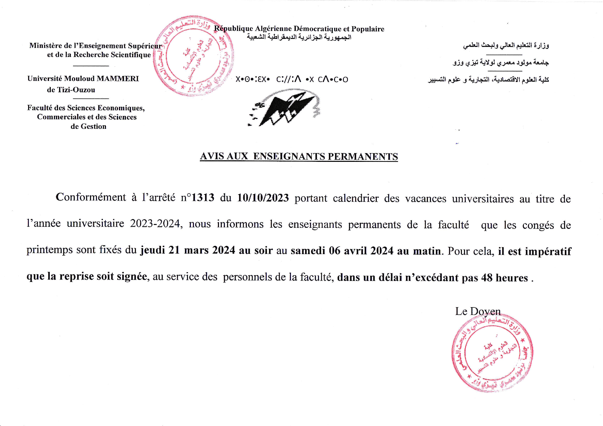 19 Mar 2024 | Actualité, Dép sc financière tamda, Sc commerciale, Sc Eco, Sc financière hasnaoua, Sc gestion