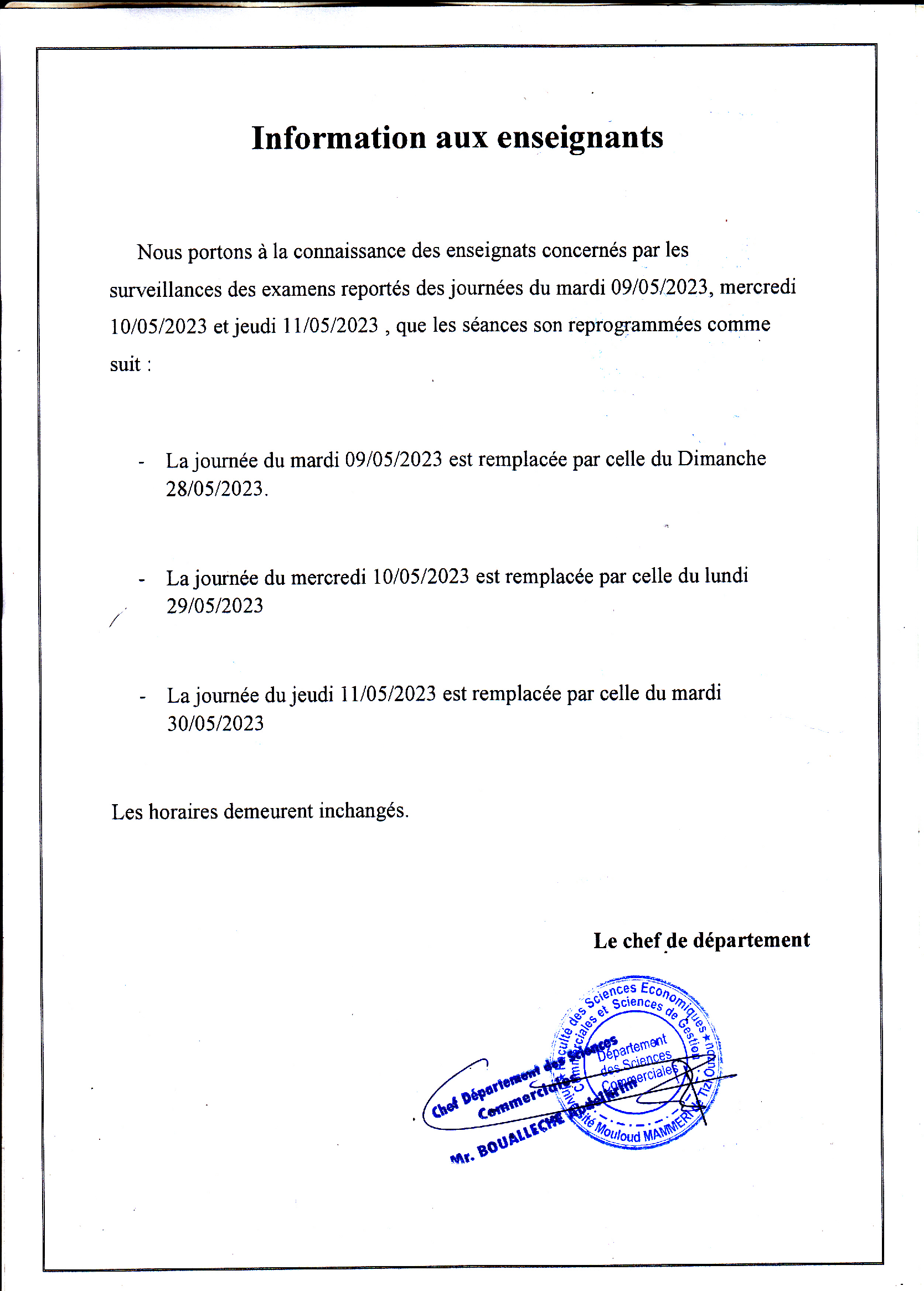 – Le Vice Doyen chargé des études et des questions liées aux étudiants