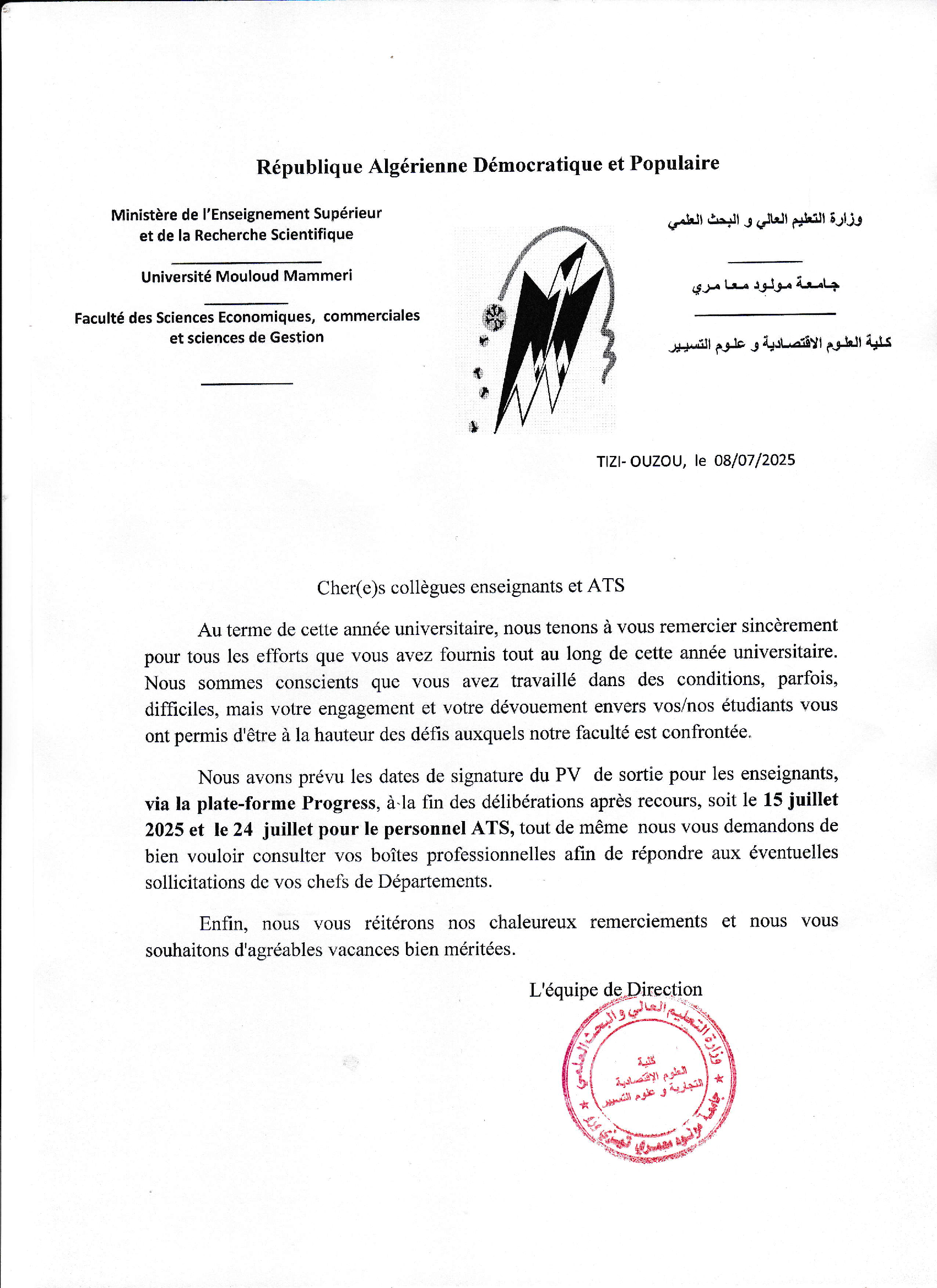 Avis aux enseignants et ATS de la Faculté.