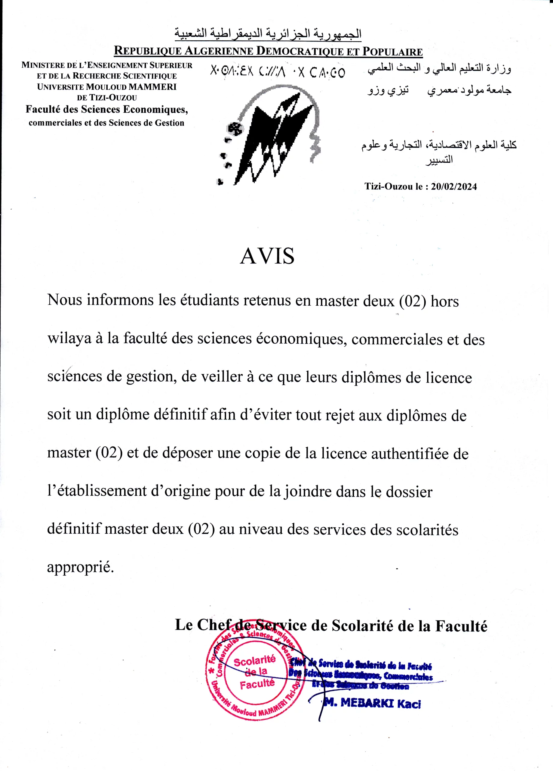 - Avis aux étudiants du 2 ème année sciences commerciales.