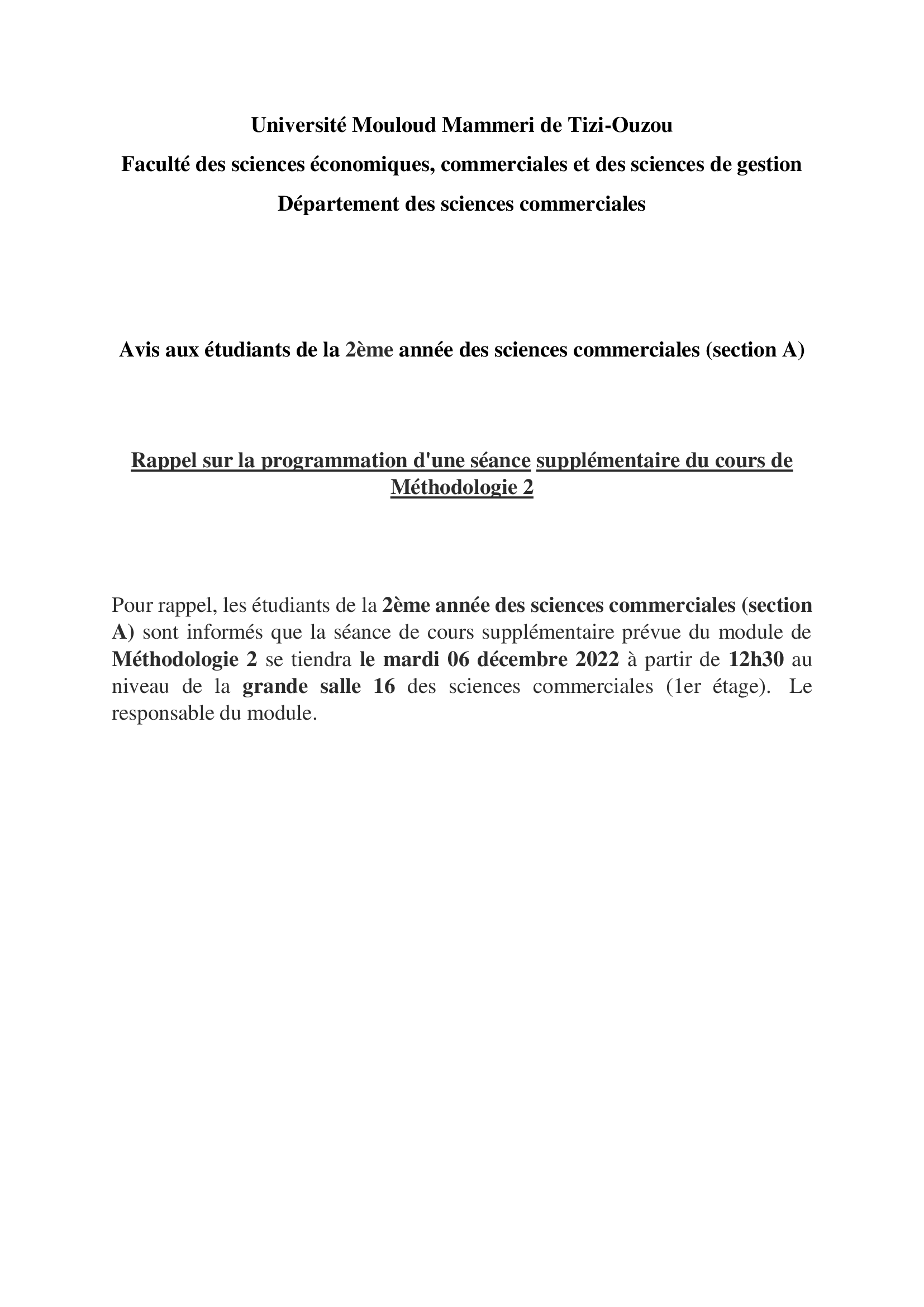 Avis aux étudiants du 2 ème année sciences commerciales.