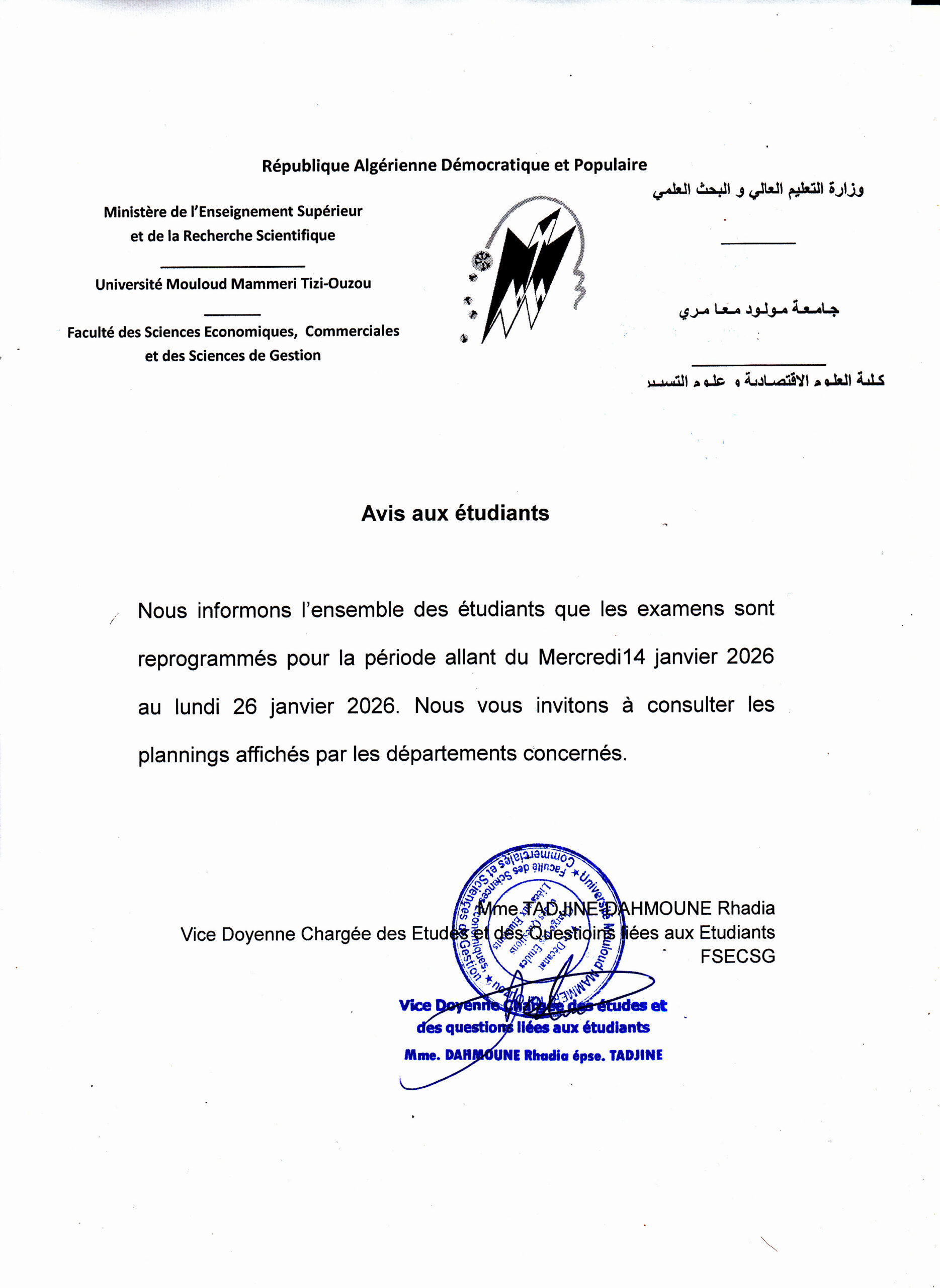 11 Jan 2026 | Actualité, Dép sc financière tamda, Sc commerciale, Sc Eco, Sc financière hasnaoua, Sc gestion