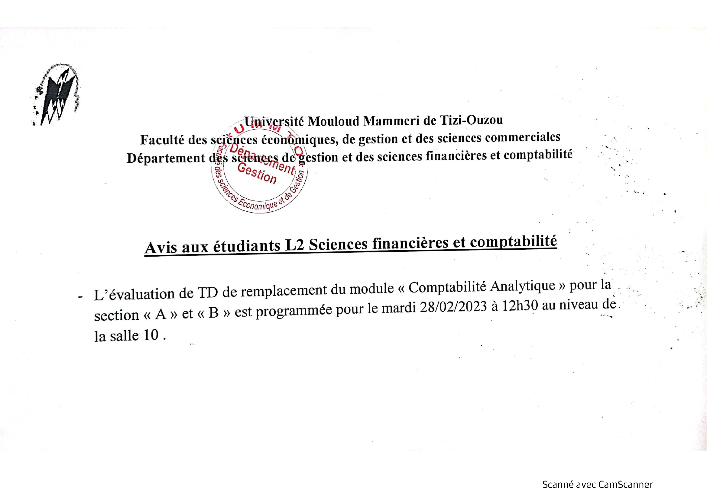 Planning des examens Sc Financières Hasnaoua