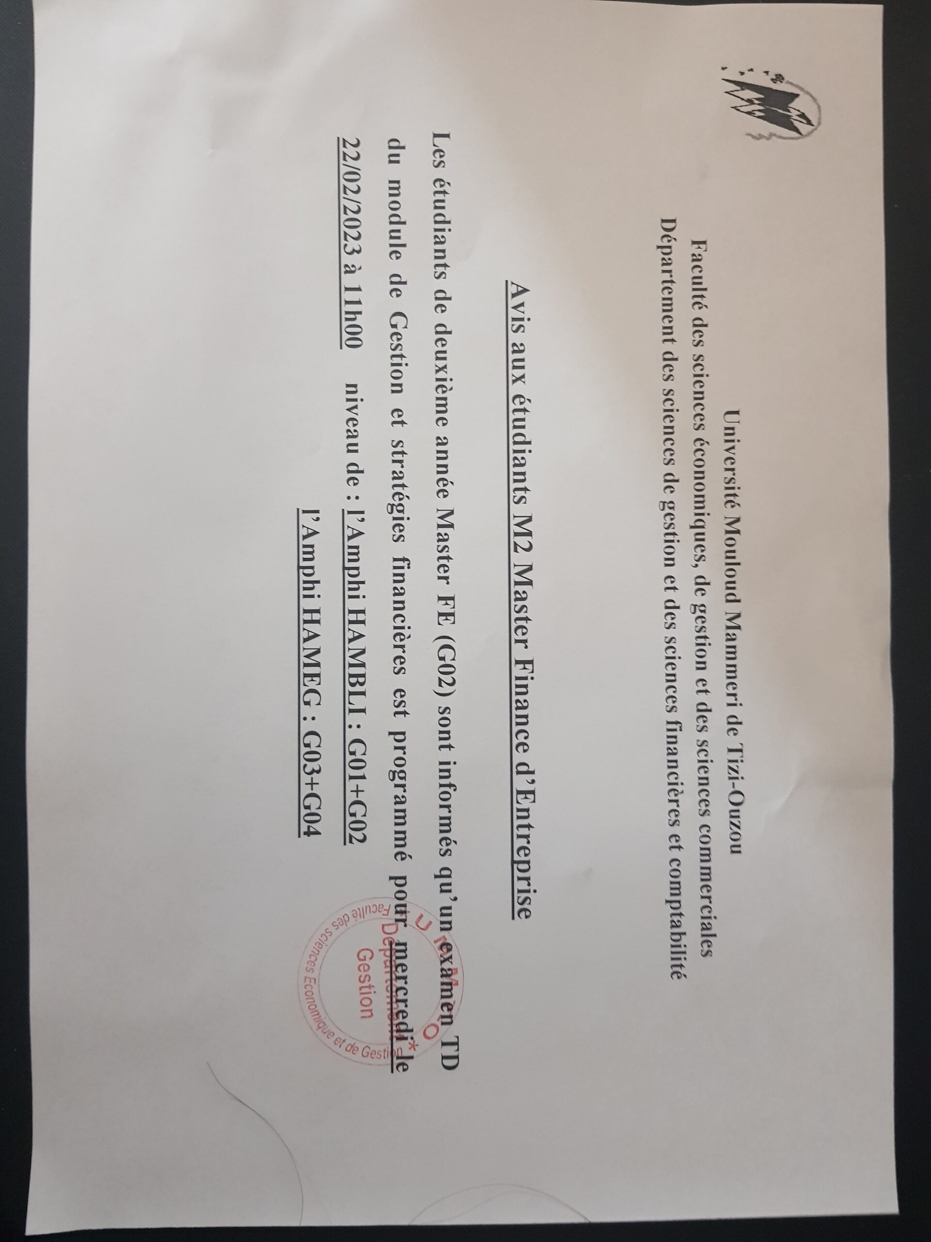 Avis aux étudiants de la section G1 groupes 22, 25, 27 et 29.