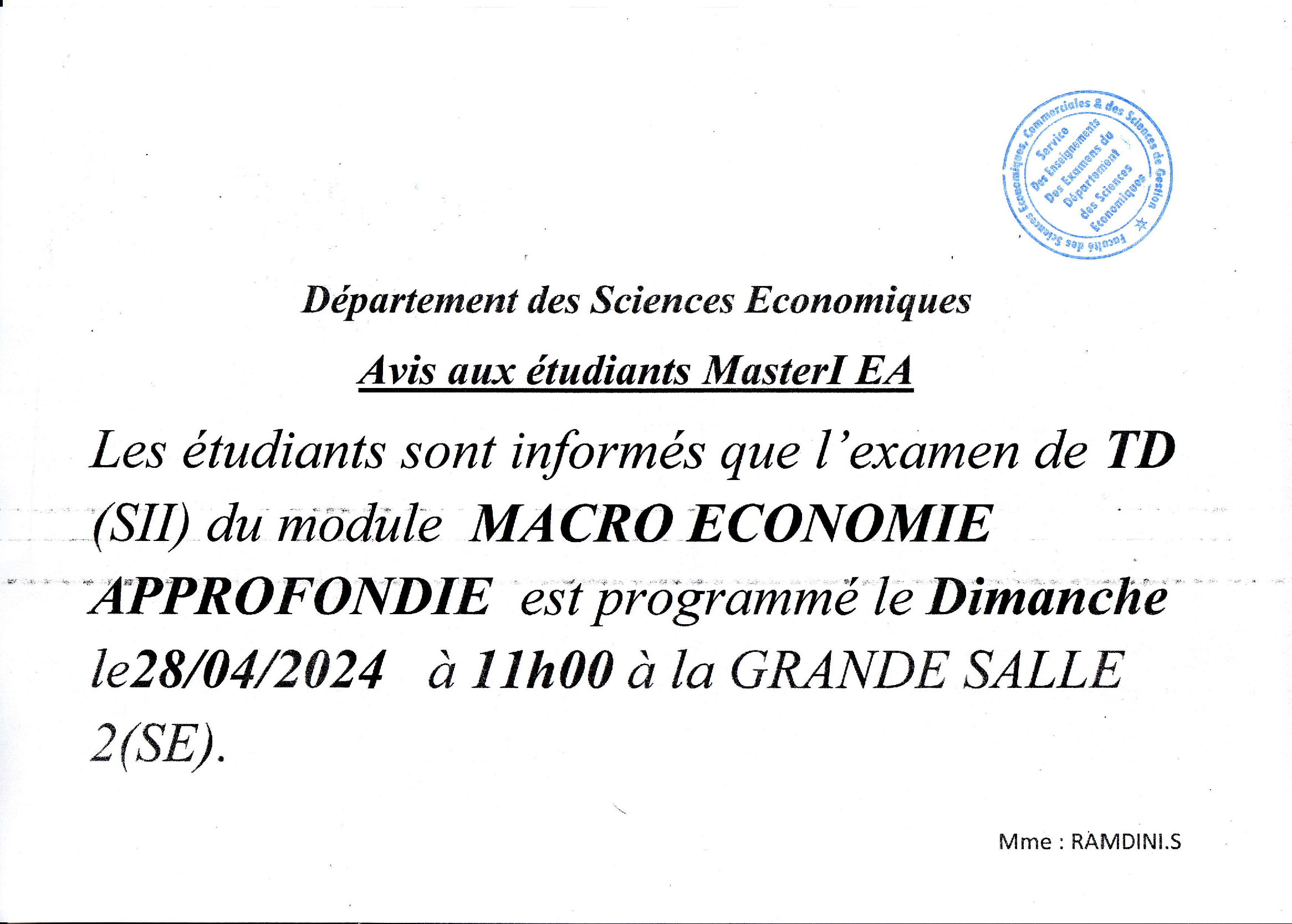 Planning examens Sc économiques