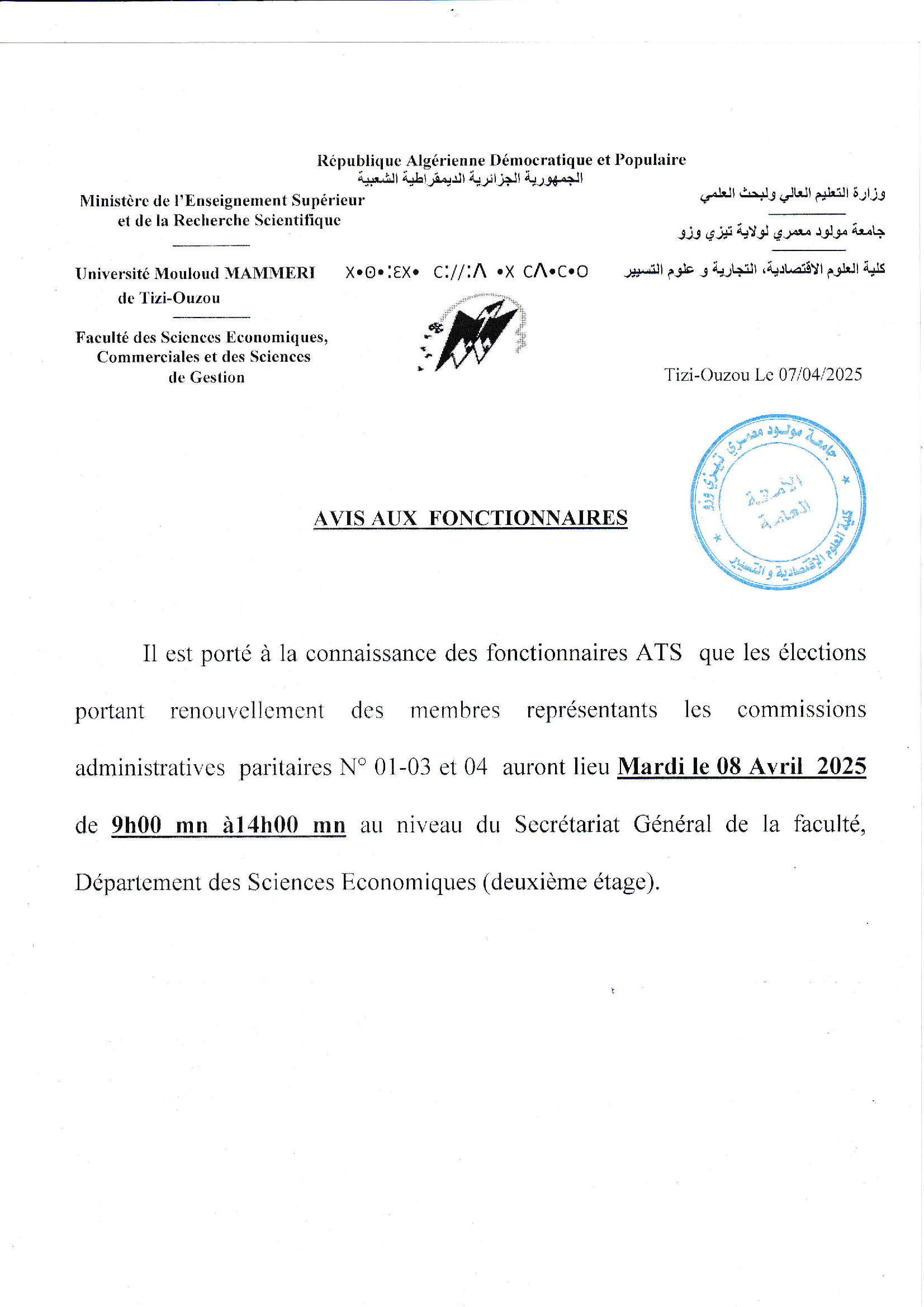 Avis de Soutenance de Thèse de Doctorat en Sciences économiques de Mr SEDIKI Abderrahmane.