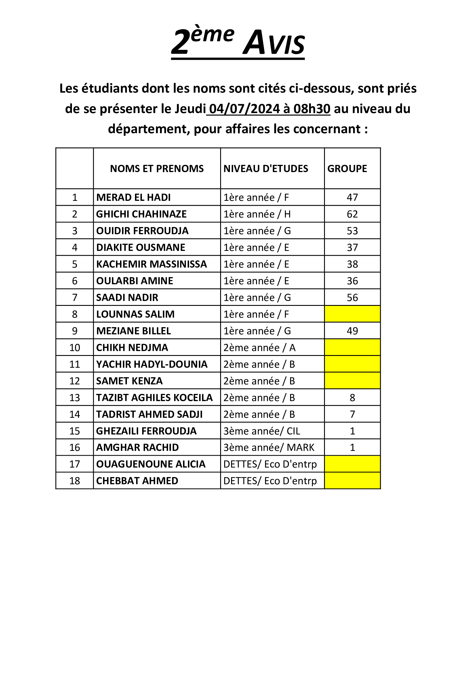 Avis aux étudiants.