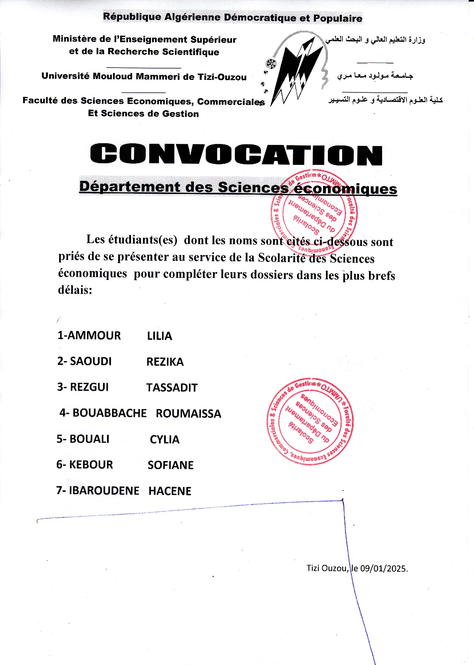 Avis aux étudiants de département.