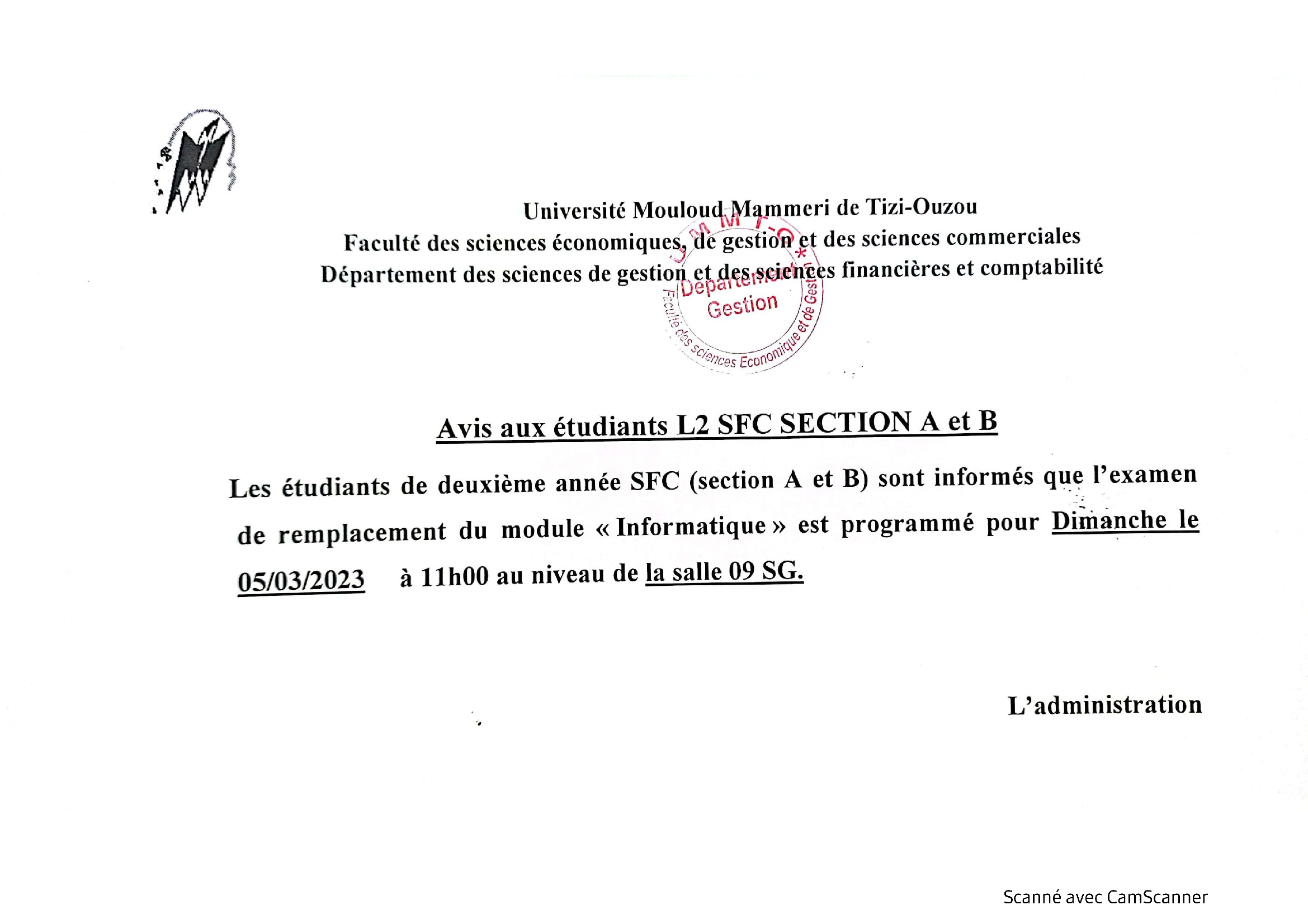 Avis aux étudiants en L2 sces commerciales, Groupe 05.