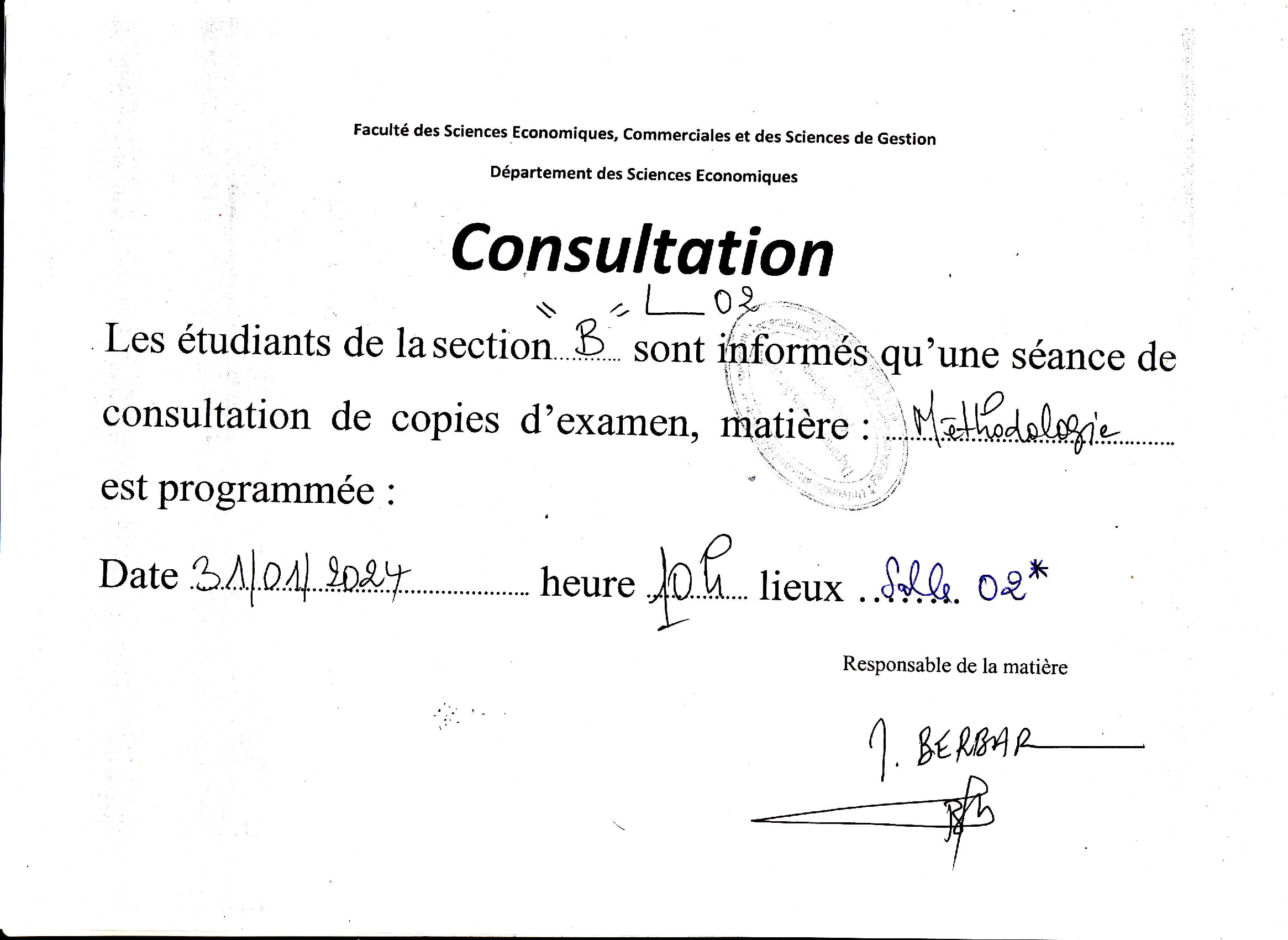 Information pour les étudiants de L2,section B.
