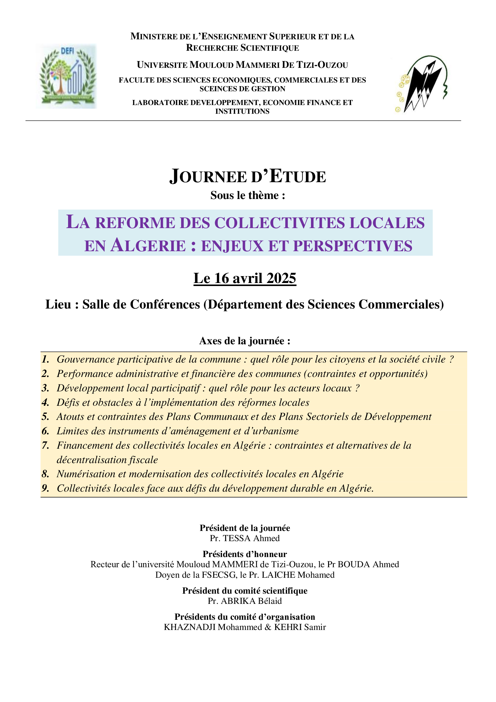 ⇒Détails sur la journée d’étude sur la Réforme des CL en Algérie
