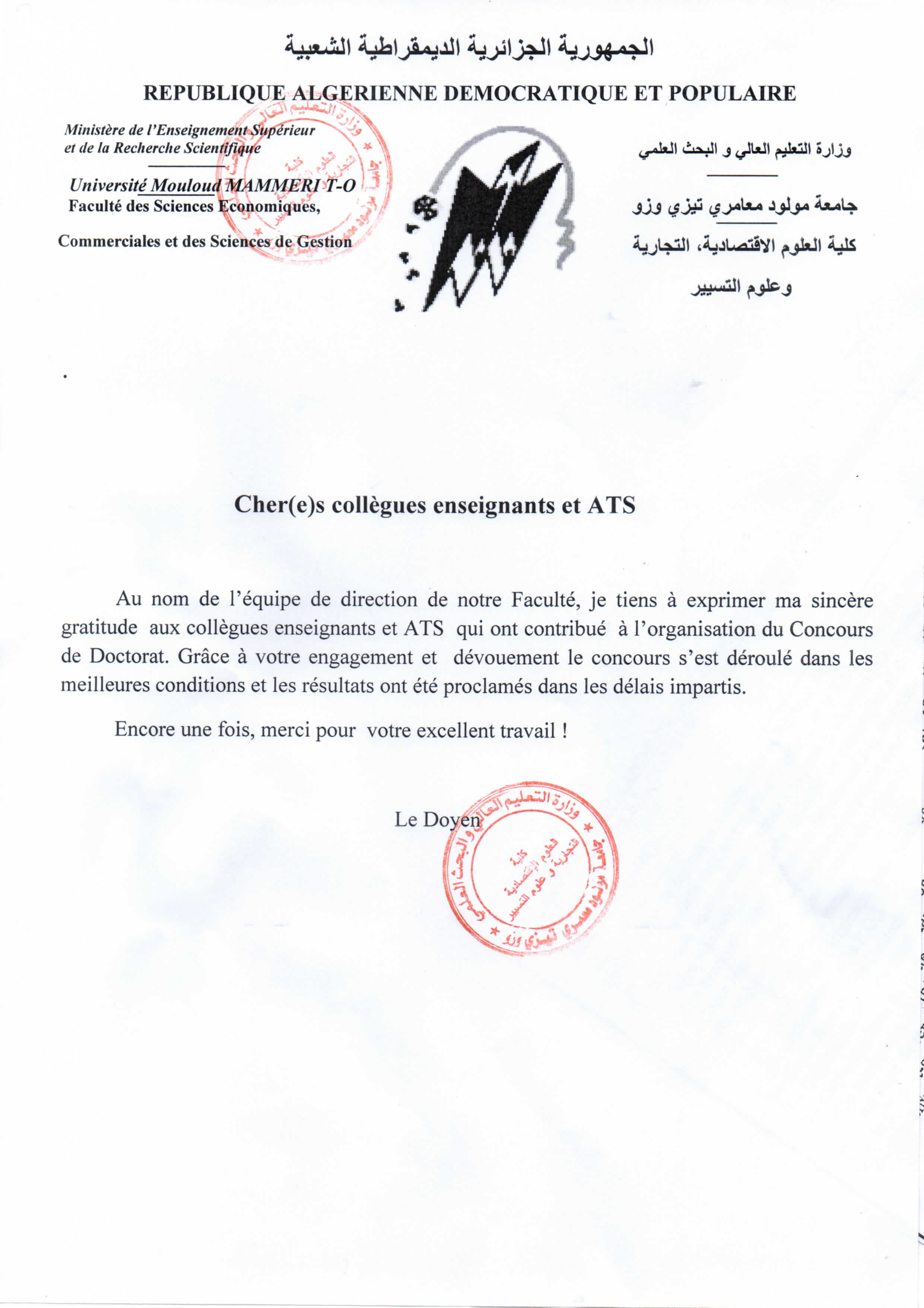 Mot du doyen.