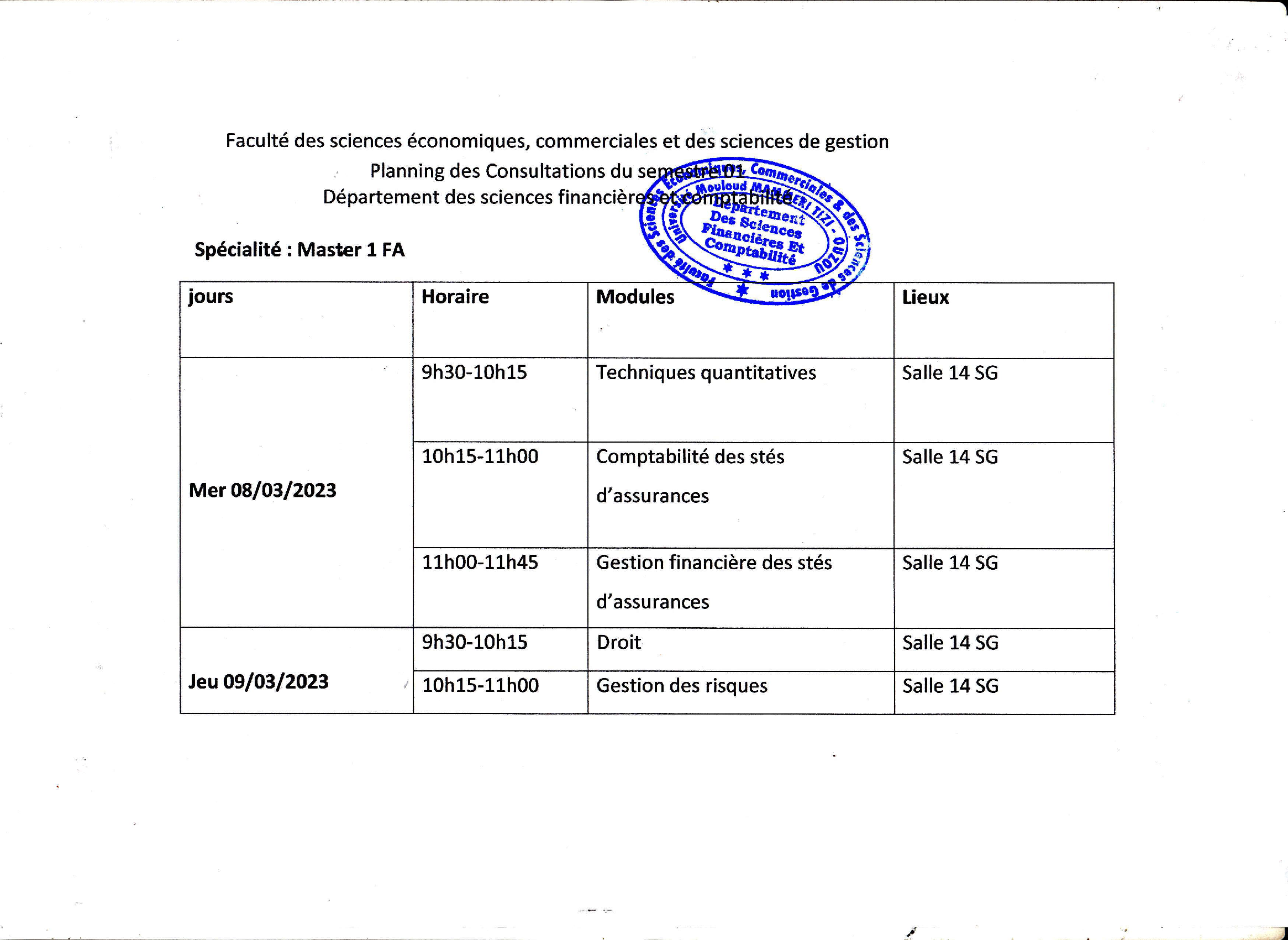 Avis aux étudiants de L2 Sciences Commerciales – Groupes 03 et 04.