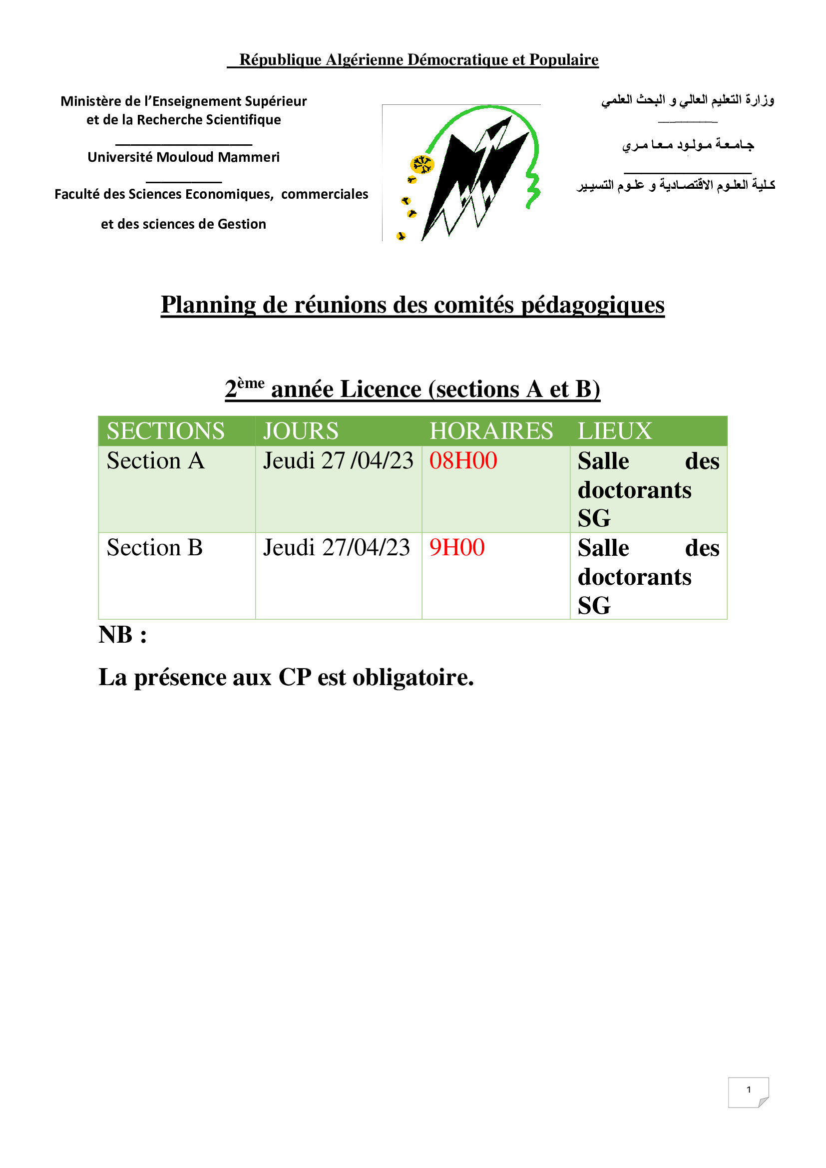 Planning des CP pour L2 sciences de gestion.
