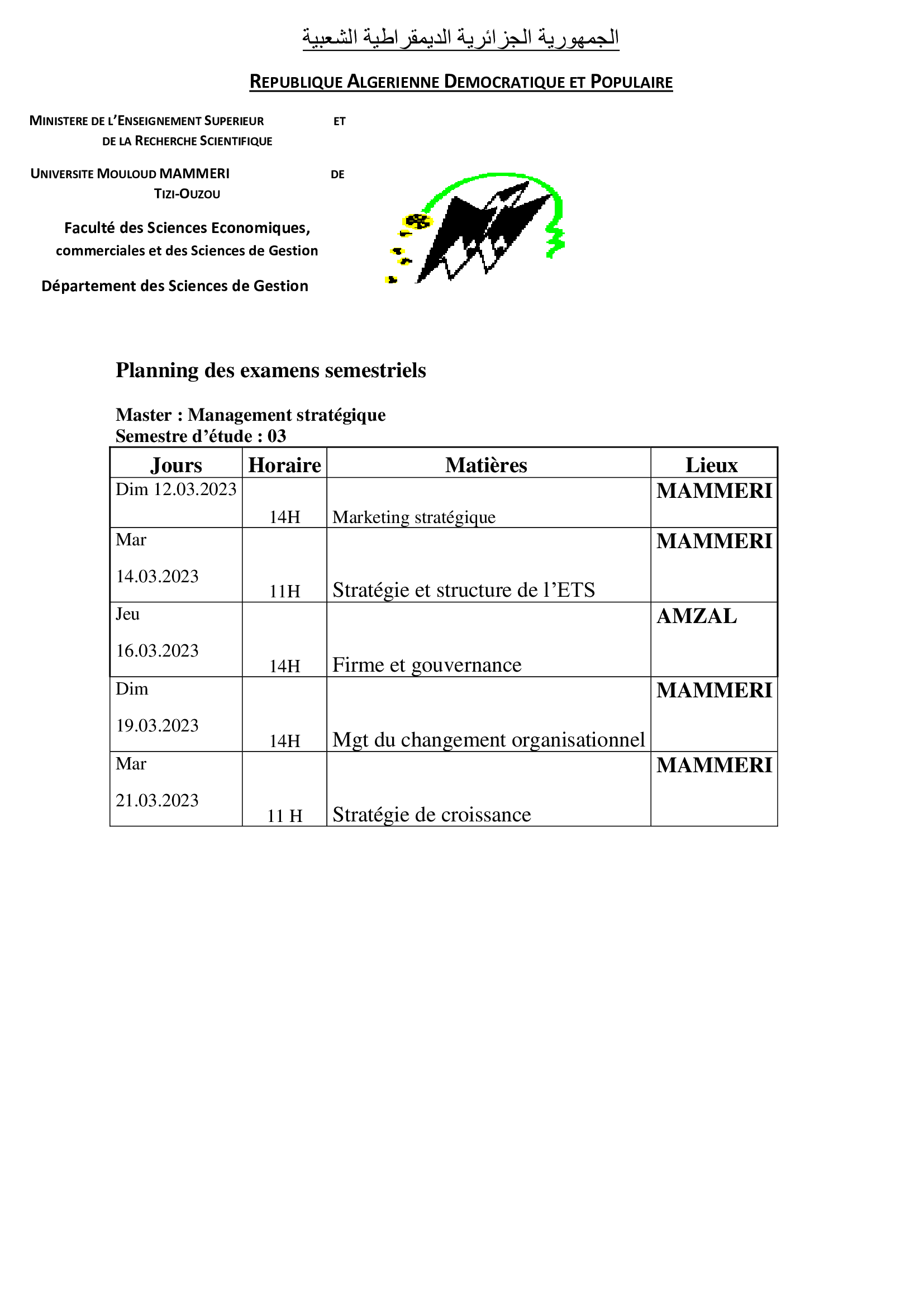 5 Mar 2023 | Planning examens Sc de Gestion, Sc gestion