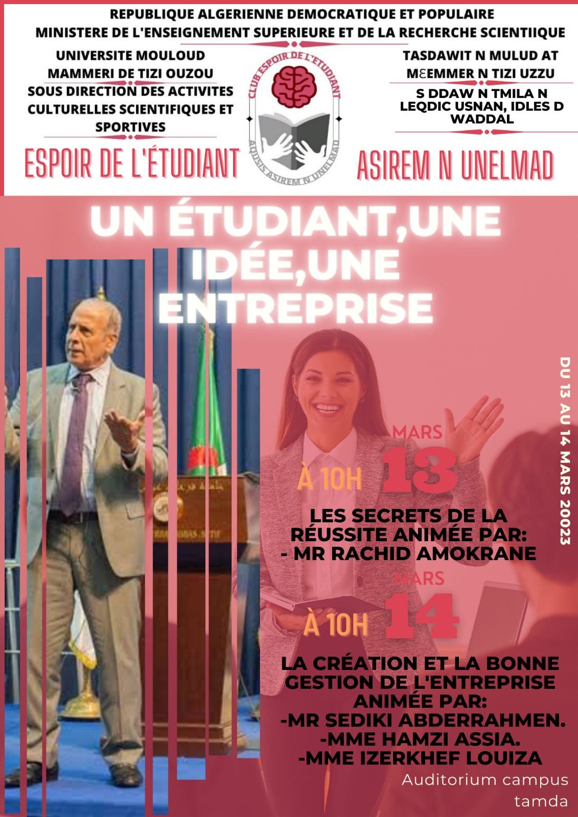 -Un évènement pas comme les autres qui aura lieu les 13 et 14 mars 2023 à l’auditorium du campus Tamda.