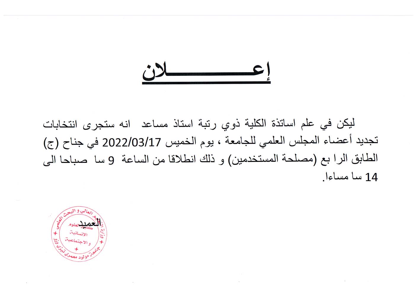 اعلان – انتخابات تجديد اعضاء المجلس العلمي للجامعة