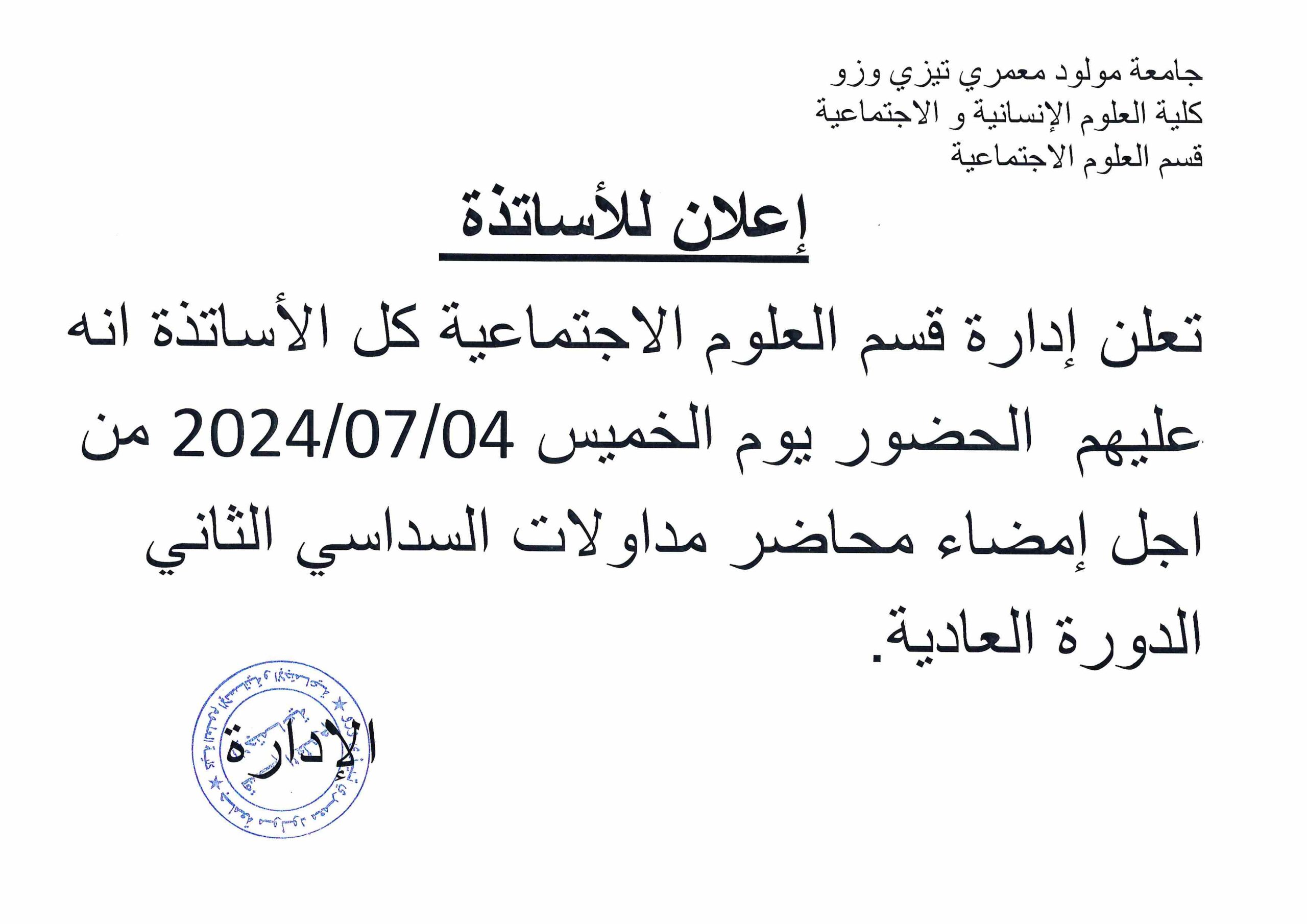 إعلان لطلبة الليسانس و الماستر قسم العلوم الإجتماعية
