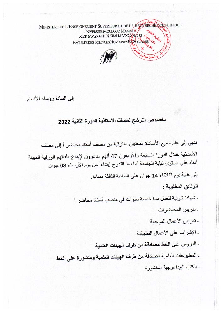 إعلان لطلبة الليسانس و الماستر قسم العلوم الإجتماعية