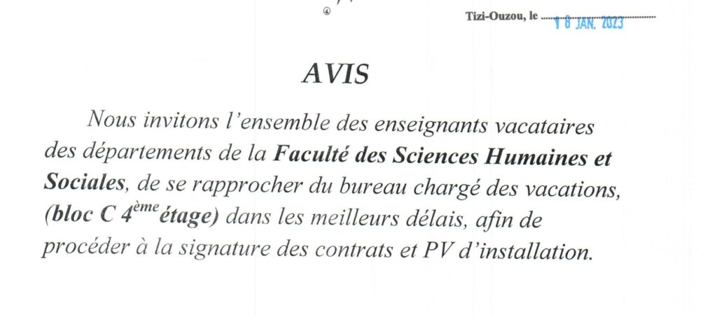 إعلان لطلبة الليسانس و الماستر قسم العلوم الإجتماعية