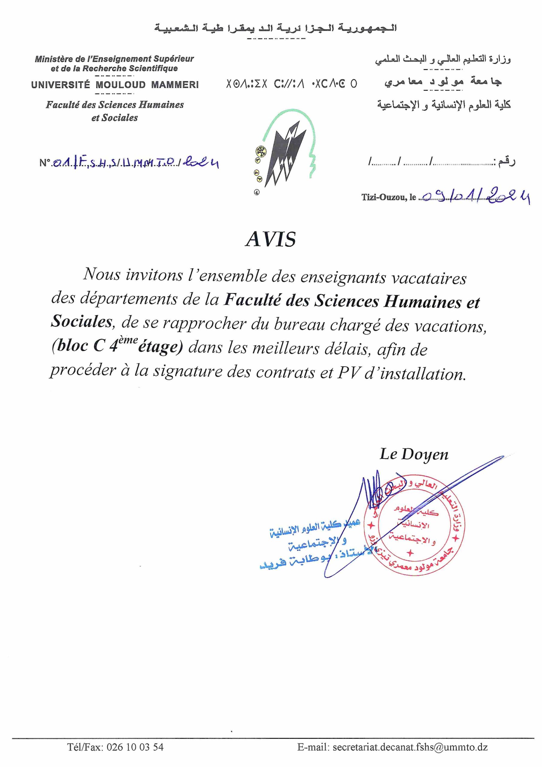 إعلان لطلبة الليسانس و الماستر قسم العلوم الإجتماعية